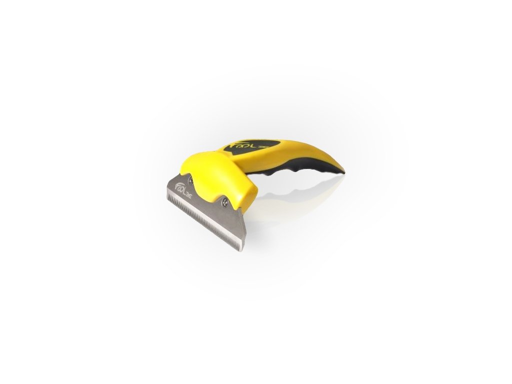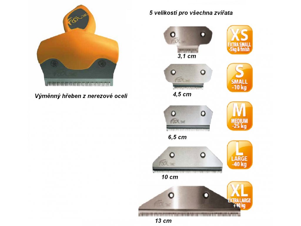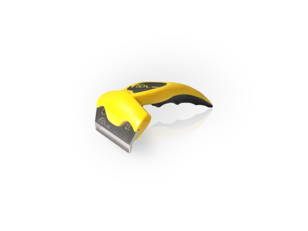 Je určený na vyčesání hlavně v období línání. Při vyčesávání projíždíte rychle a bez tlaku ve směru růstu chlupů. Optimální úhel vyčesávání vám udržuje tvar rukojeti. Pokud vyčesávací hřeben Foolee One připojíte odsávací hubici Foolee Air k vysavači, urychlíte vyčištění kožichu psa od volných chlupů, šupinek kůže, lupů a organických nečistot.